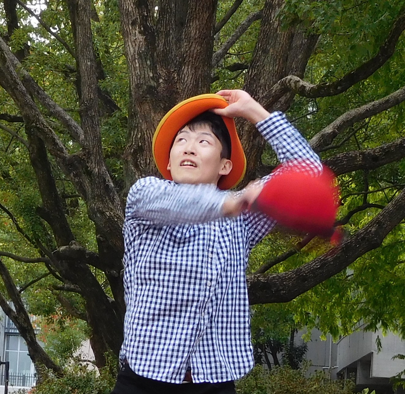 松原 冬馬 Patioには珍しいハットジャグラー。「これすごくないですか?」(指の上でハットを回しながら) |