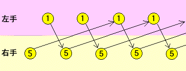問題2.日本式お手玉(「5・1」で表せます)のパターンを矢印を使って上と同じようにして図に書き表しなさい。